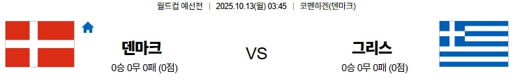 10월13일 03:45 덴마크 그리스 월드컵예선전 스포츠분석,스포츠중계