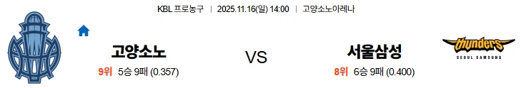 고양소노의 승리와 언더를 추천드리는 경기입니다.