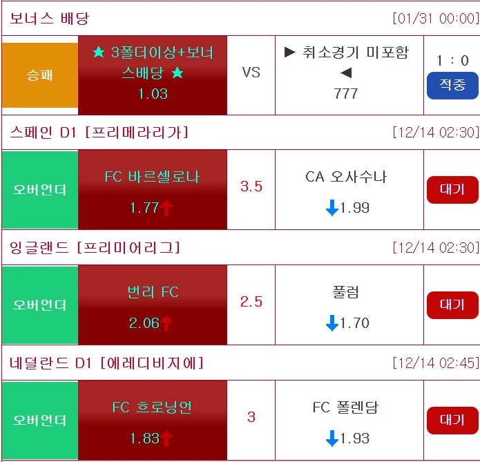 축구 배당킹 함박스 및 주력 두박스