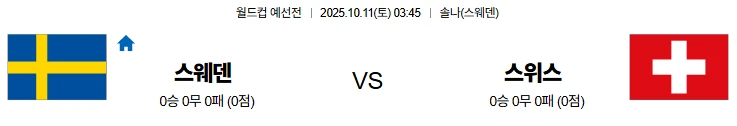10월11일 03:45 스웨덴 스위스 월드컵예선전 스포츠분석,스포츠중계