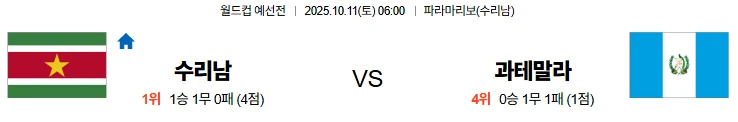 10월11일 06:00 수리남 과테말라 월드컵예선전 스포츠분석,스포츠중계