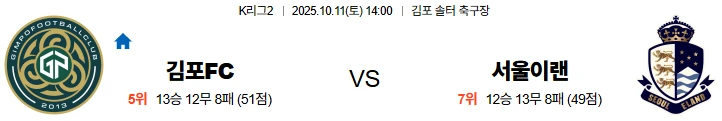 10월11일 14:00 김포FC 서울이랜드 K리그 스포츠분석,스포츠중계