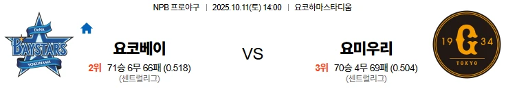 10월11일 14:00 요코하마 요미우리 NPB 스포츠분석,스포츠중계