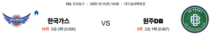 10월11일 14:00 한국가스공사 원주DB KBL 스포츠분석,스포츠중계