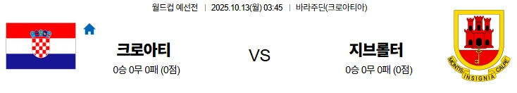 10월13일 03:45 크로아티아 지브롤터 월드컵예선전 스포츠분석,스포츠중계