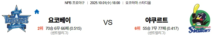 10월1일 18:00 요코하마 야쿠르트 NPB 스포츠분석,스포츠중계