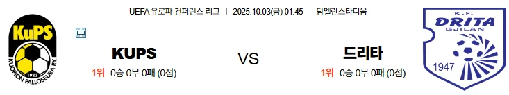 10월3일 01:45 KUPS 드리타 UECL 스포츠분석,스포츠중계
