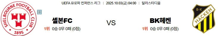 10월3일 04:00 셀본FC 헤켄 UECL 스포츠분석,스포츠중계