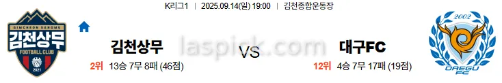 9월14일 19:00 김천상무 대구FC K리그1 스포츠분석 축알못 토토사이트