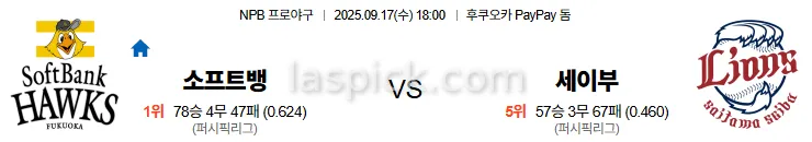 9월17일 18:00 소프트뱅크 세이부 일본야구 스포츠분석 스포츠중계 토토사이트