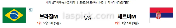 9월18일 11:00 브라질 세르비아 세계배구 스포츠분석 스포츠중계 토토사이트