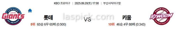 9월20일 17:00 롯데 키움 국내야구 스포츠분석 스포츠중계 토토사이트