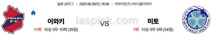 9월20일 18:00 이와키 미토 J2리그 스포츠분석 스포츠중계 토토사이트