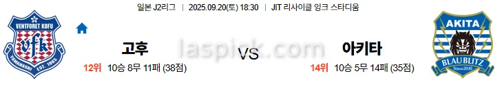 9월20일 18:30 고후 아키타 J2리그 스포츠분석 스포츠중계 토토사이트