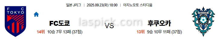9월23일 18:00 FC도쿄 후쿠오카 J리그 스포츠분석 스포츠중계 토토사이트
