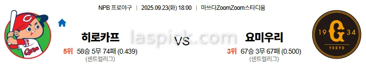 9월23일 18:00 히로시마 요미우리 일본야구 스포츠분석 스포츠중계 토토사이트