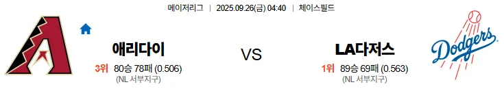 9월26일 04:40 애리조나 LA다저스 MLB 스포츠분석,스포츠중계