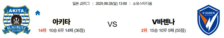 9월28일 13:00 아키타 나가사키 J리그 스포츠분석,스포츠중계