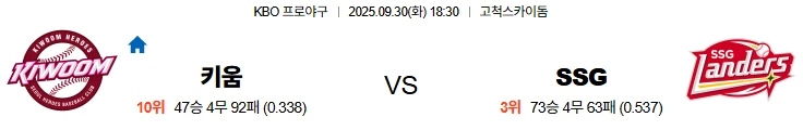 9월30일 18:30 키움 SSG KBO 스포츠분석,스포츠중계