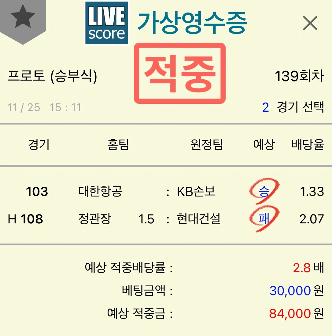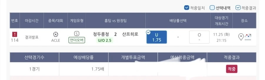 11월25일적중내역
