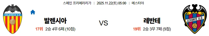 발렌시아와 레반테입니다. 발렌시아는 두줄 수비를 촘촘히 세운 뒤, 측면 전개와 크로스로 마무리를 노리는 팀입니다. 라바는 측면에서 볼을 받으면 수비수 간의 거리를 확인하고 컷백과 크로스를 번갈아 선택하며 박스 근처에서 압박을 가합니다. 페펠루는 중원에서 짧은 패스로 흐름을 안정시키고 필요시 측면 전환 패스로 수비 블록을 넓힙니다. 게라는 중원과 2선을 오가며 전방 압박과 세컨드볼 경합에 적극 참여해 공격과 수비 연결 고리를 만듭니다. 장신 자원들이 코너킥과 프리킥 상황에서 제공권을 장악하면 후반 세트피스에서 한방으로 흐름을 바꿀 수 있어, 발렌시아는 꾸준한 측면 전개와 마지막 승부처 세트피스로 경기를 정리할 능력을 갖춘 팀입니다. 레반테는 파이브백을 기반으로 라인을 낮추고 두꺼운 수비 블록을 형성해 버티는데 초점을 맞춘 팀입니다. 전방 로메로는 뒷공간을 한두번 노리지만, 팀 전술상 고립되는 장면이 잦습니다. 브루게는 중원과 2선을 오가며 역습 첫패스를 책임지지만, 수비 시간이 길어질수록 공격 관여도가 떨어집니다. 마르티네즈는 수비 라인 간격을 조절하며 역습시 좌우로 지원합니다. 오픈플레이에서 박스안을 촘촘히 지키지만, 경기 후반 세트피스에서 집중력이 떨어지고 마크 전환이 늦어 상대 장신 자원에게 결정적 헤더 찬스를 허용하는 약점이 반복됩니다. 결론을 말씀드리자면 이 경기는 후반으로 갈수록 세트피스 집중력이 승부를 좌우할 가능성이 높습니다. 홈팀 발렌시아는 양 측면에서 꾸준히 크로스를 올리며, 장신 센터백과 스트라이커를 앞세워 박스안 제공권을 노립니다. 라바는 측면에서 공간을 벌린 뒤, 박스로 빠르게 크로스를 연결하고, 페펠루와 게라는 중원에서 템포를 조절하며 측면 전환과 세트피스 유도를 병행합니다. 원정팀 레반테는 박스안 숫자를 확보하지만, 후반 세트피스 집중력과 마크 전환이 느려 장신 자원에게 결정적 헤더를 내줄 가능성이 큽니다. 발렌시아는 홈 이점과 세트피스 강점을 바탕으로 후반 승부처에 한방을 노릴 수 있습니다.