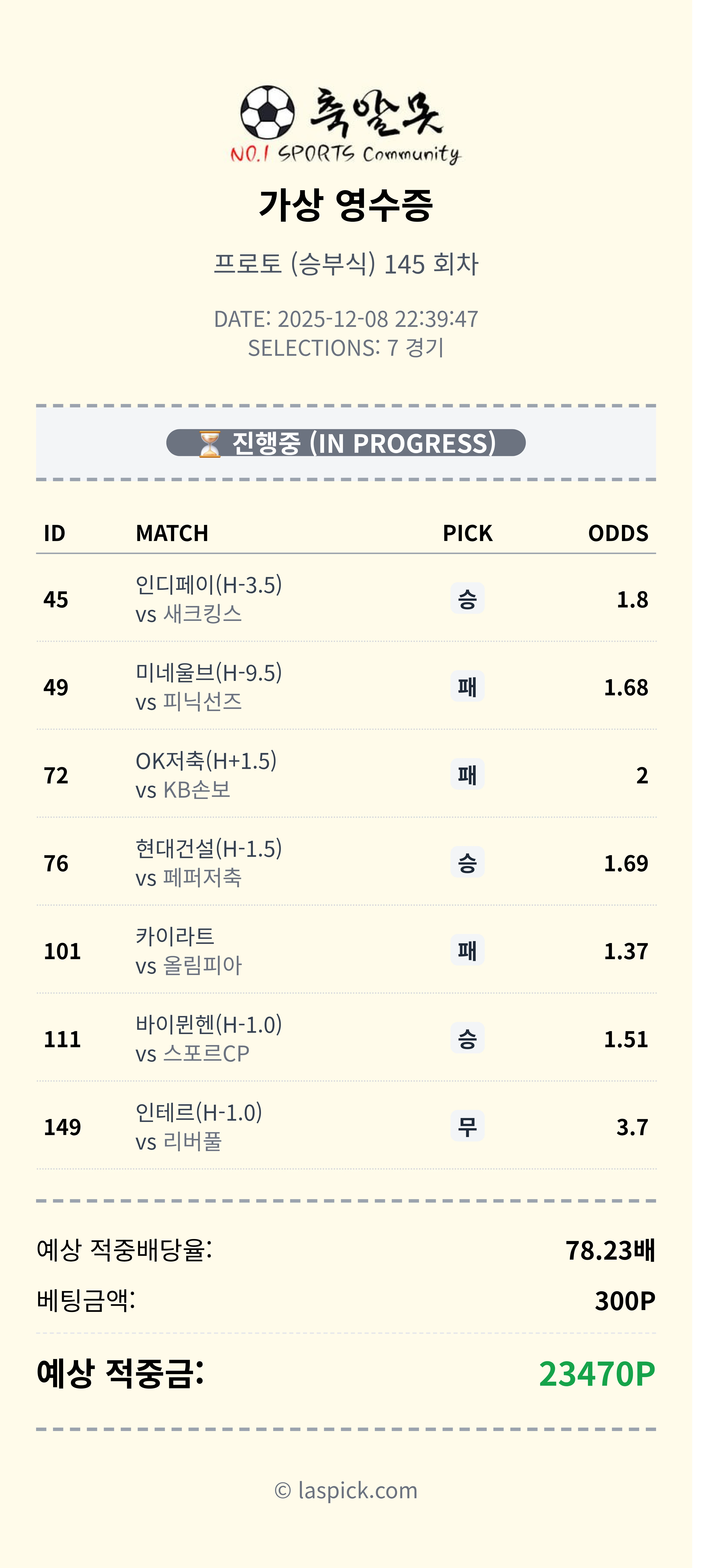 짹짹티비 스포츠중계에서는 회원분들께서 자유롭게 스포츠분석 추천픽을 공유해주지만, 100% 정답은 아닙니다. 추천픽을 참고로 자신만의 픽을 조합해서 공유해보세요 !