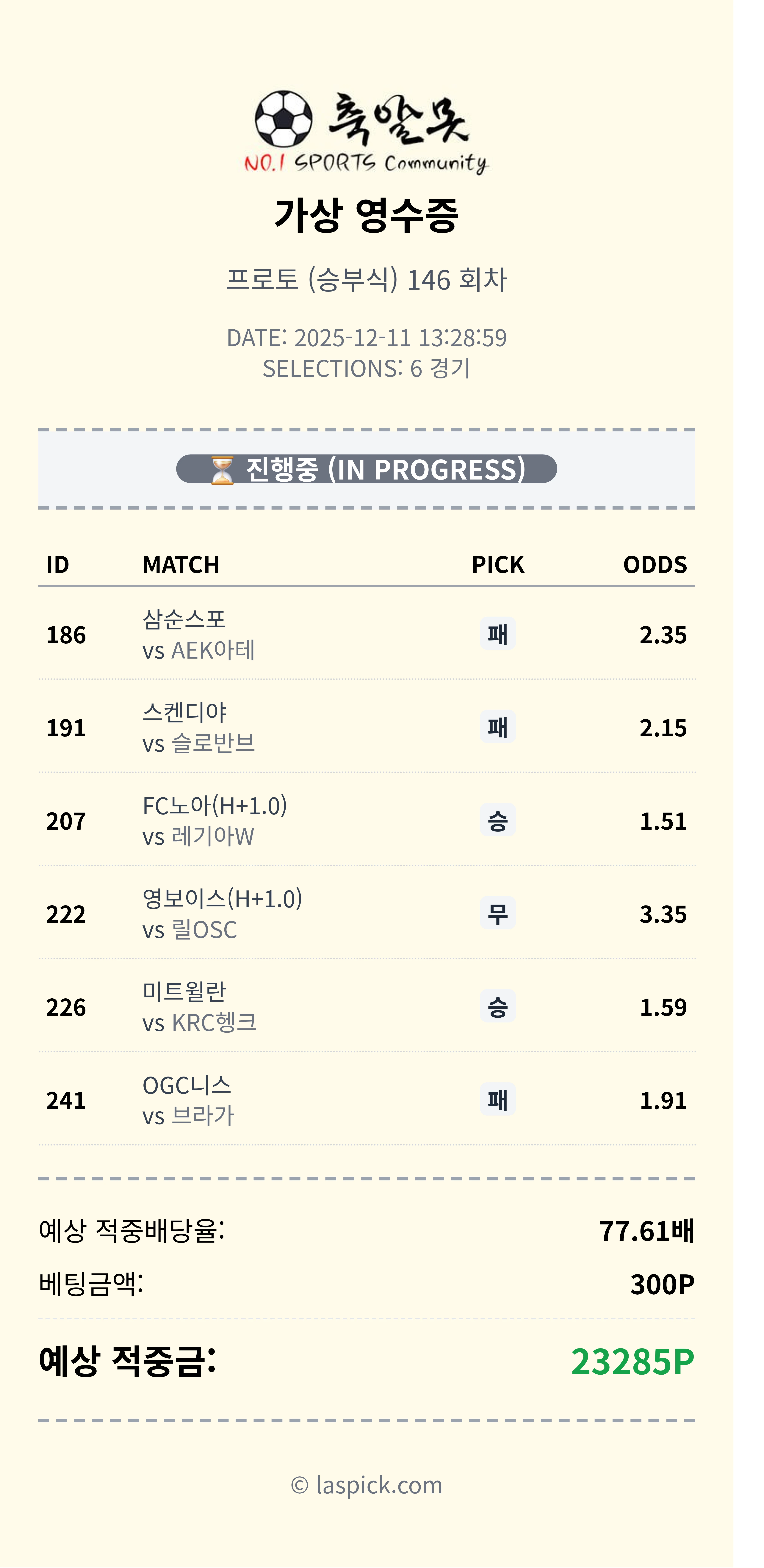 짹짹티비 스포츠중계에서는 회원분들께서 자유롭게 스포츠분석 추천픽을 공유해주지만, 100% 정답은 아닙니다. 추천픽을 참고로 자신만의 픽을 조합해서 공유해보세요 !