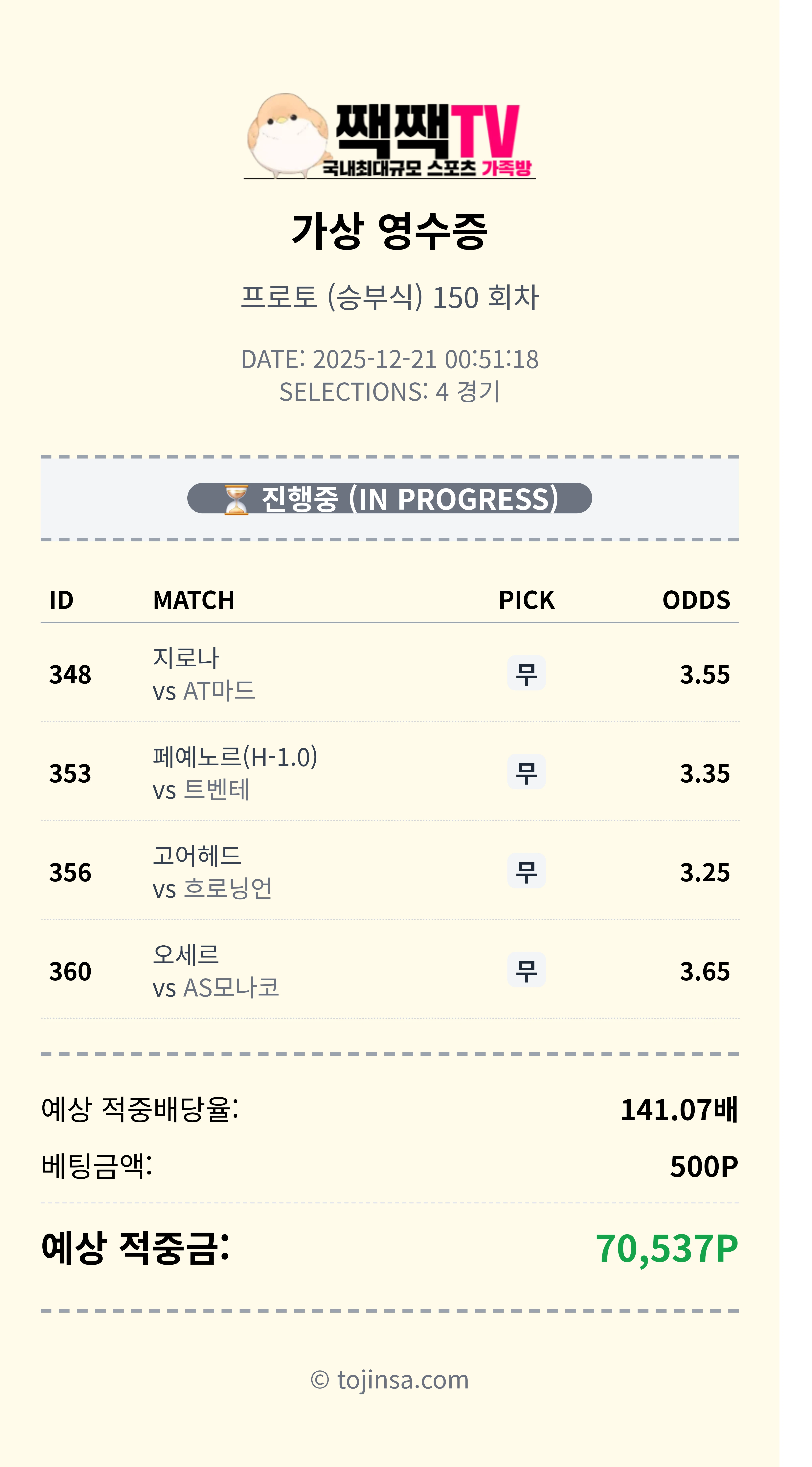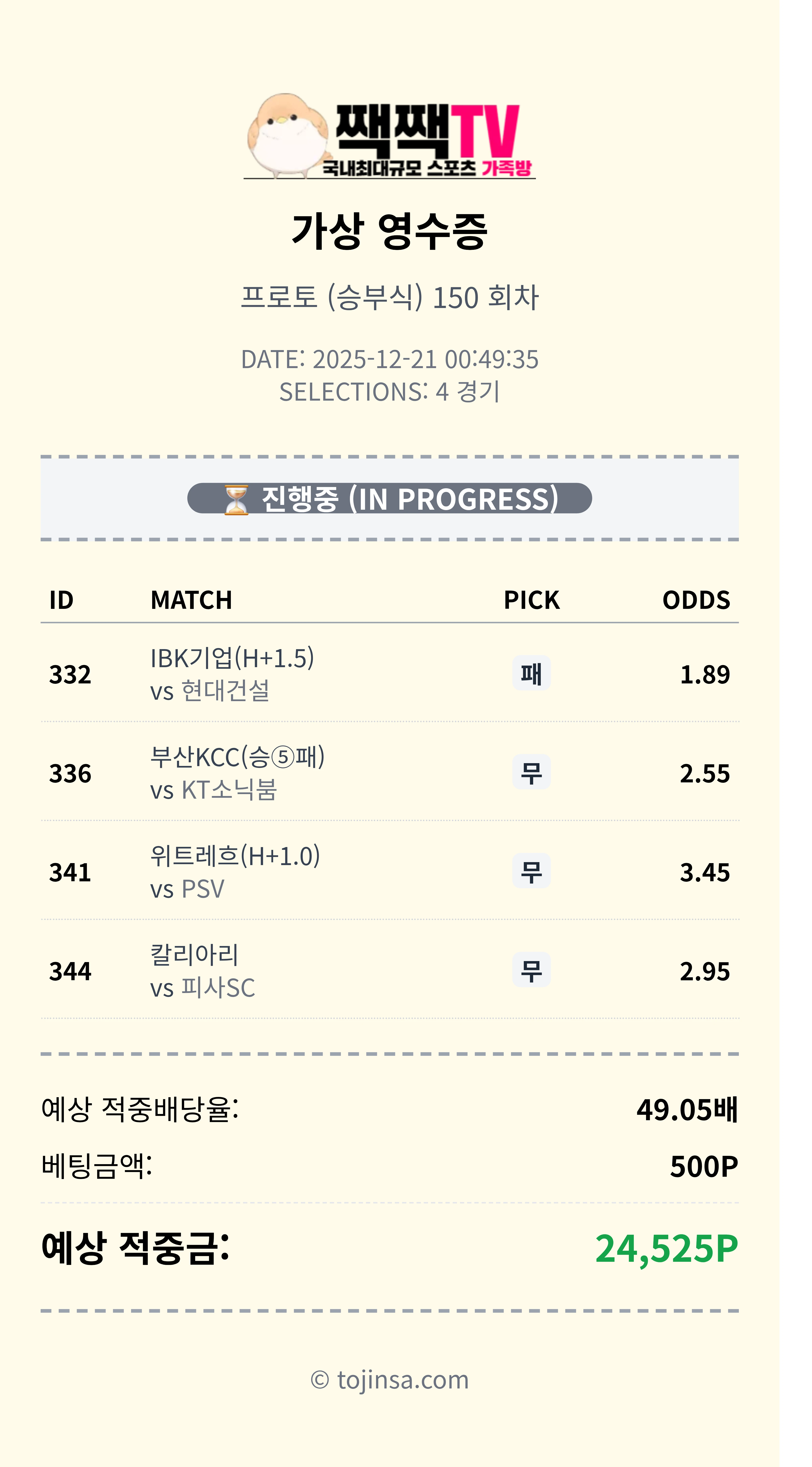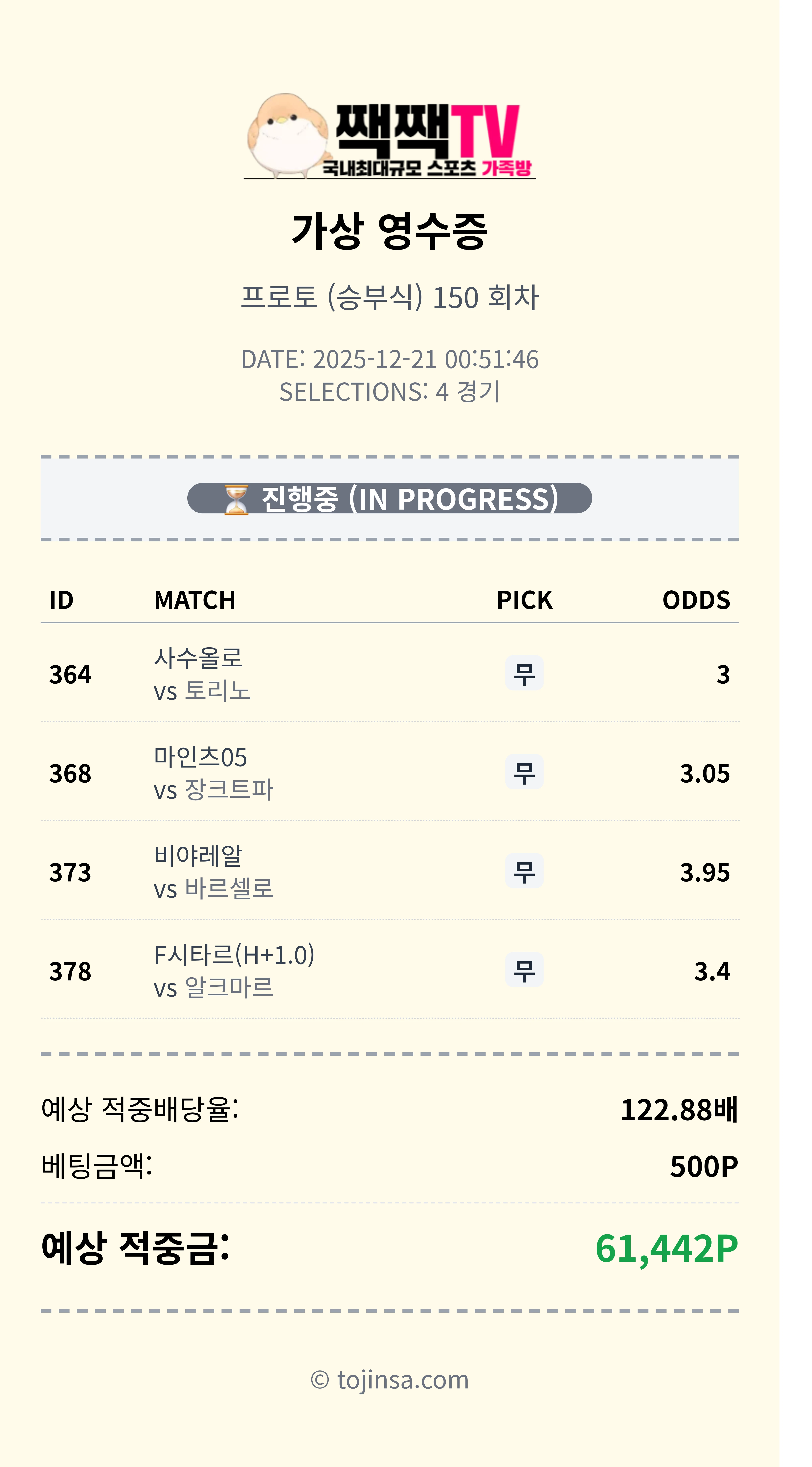 짹짹티비 스포츠중계에서는 회원분들께서 자유롭게 스포츠분석 추천픽을 공유해주지만, 100% 정답은 아닙니다. 추천픽을 참고로 자신만의 픽을 조합해서 공유해보세요 !