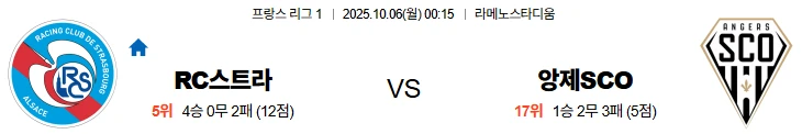 10월6일 00:15 스트라스부르 앙제 리그1 스포츠분석,스포츠중계